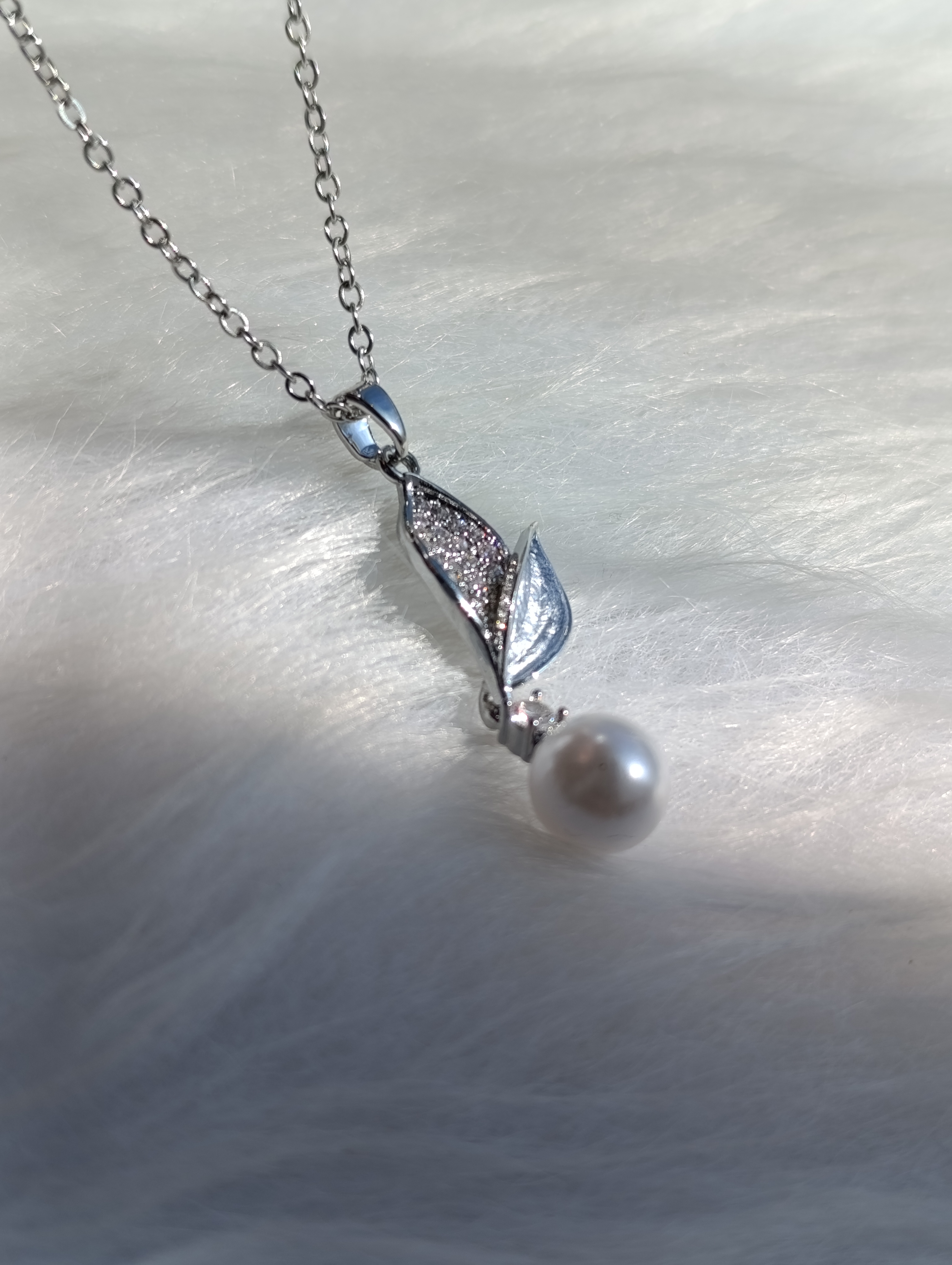 گردنبند مروارید و برگ نگینی استیل نقرهای | طرح کلاسیک و مجلسی | رنگ ثابت و ضدحساسیت۱۹۹٬۰۰۰ تومان