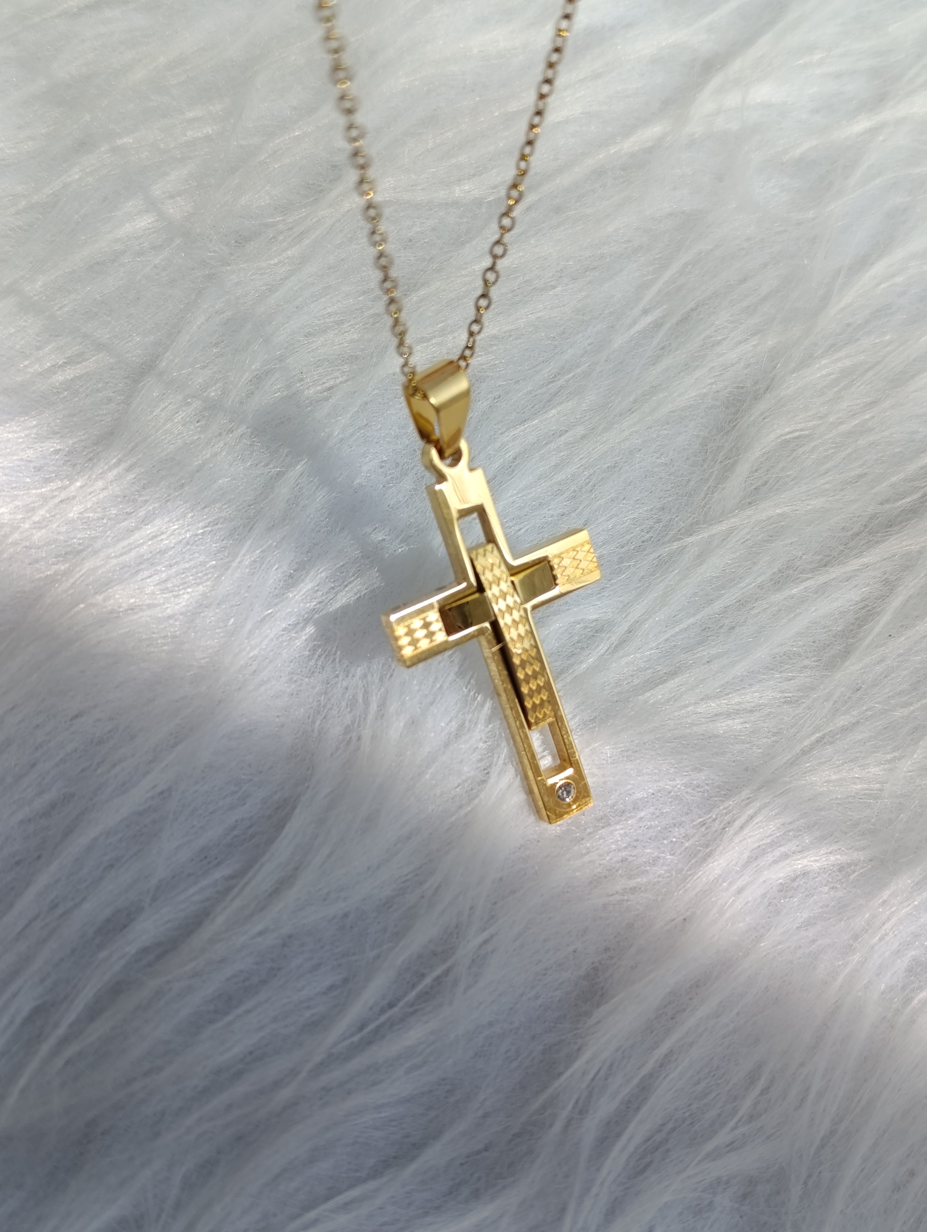 پلاک اسپرت صلیب در رنگ بندی نقره ای و طلایی استیل