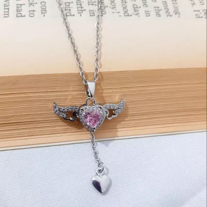 گردنبند بال فرشته قلبی(صد زبان دوستت دارم)
