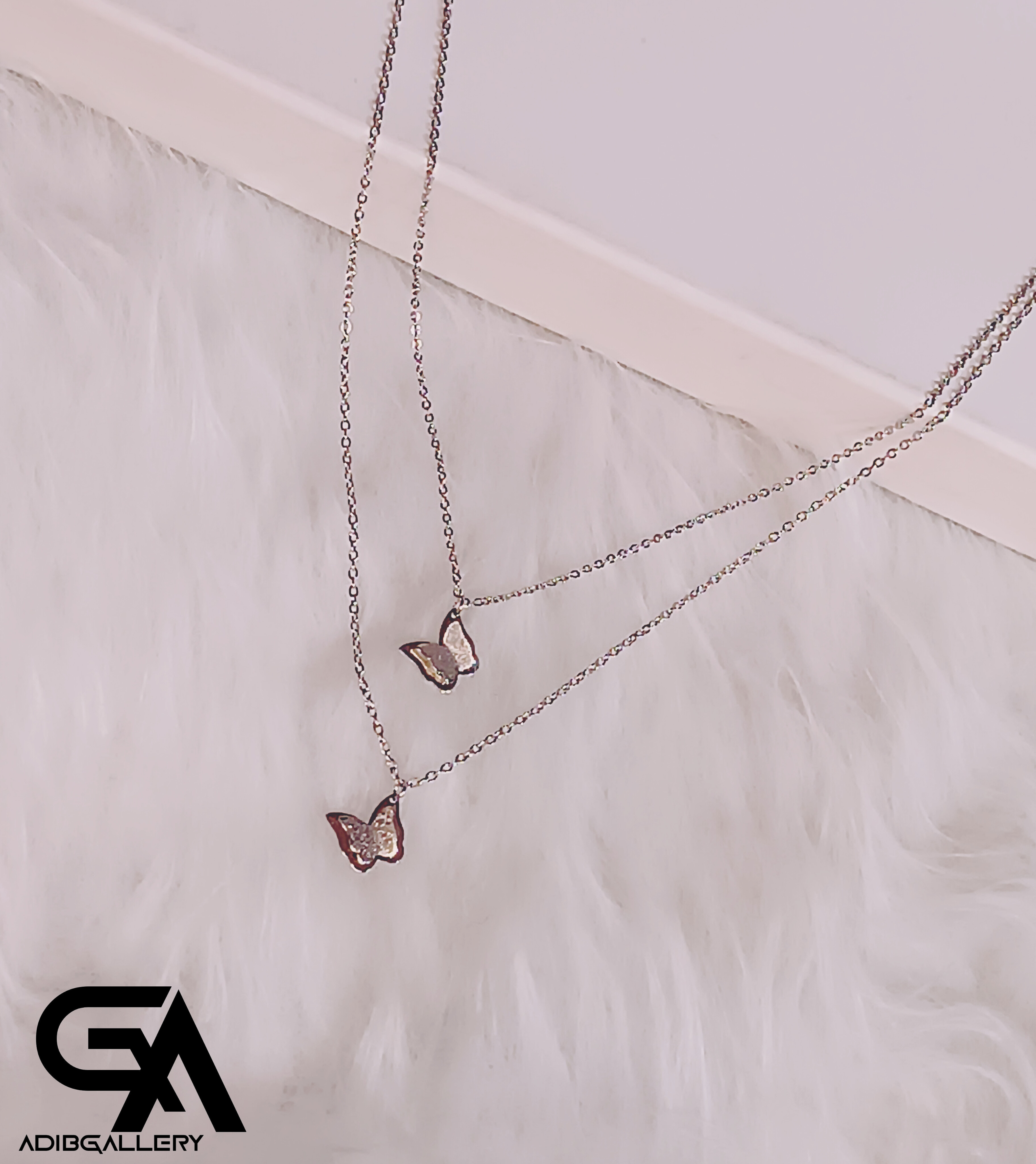 گردنبند دخترانه استیل دولاین پروانه نقره ای