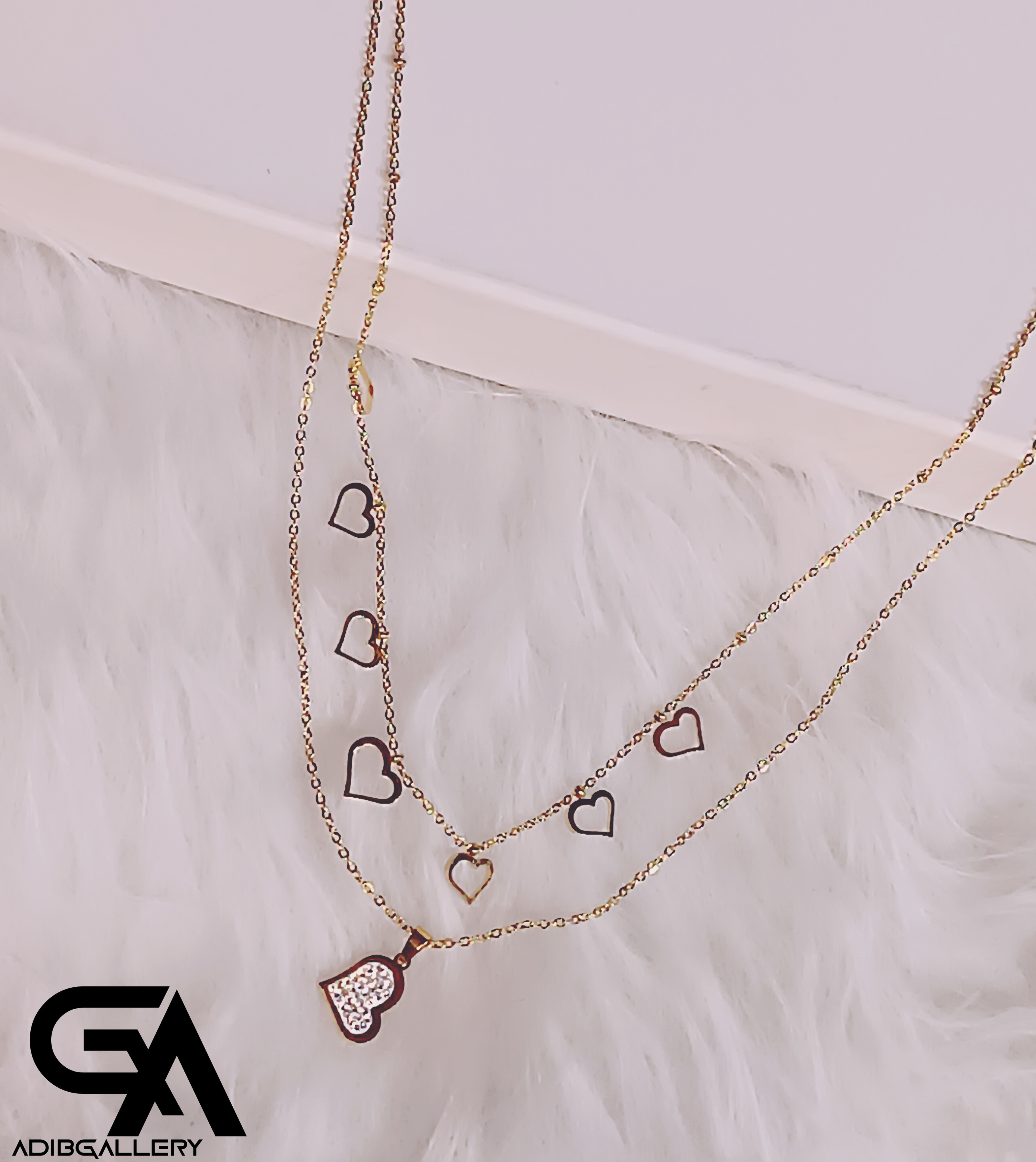 گردنبنددولاین استیل طرح طلا رنگ ثابت
