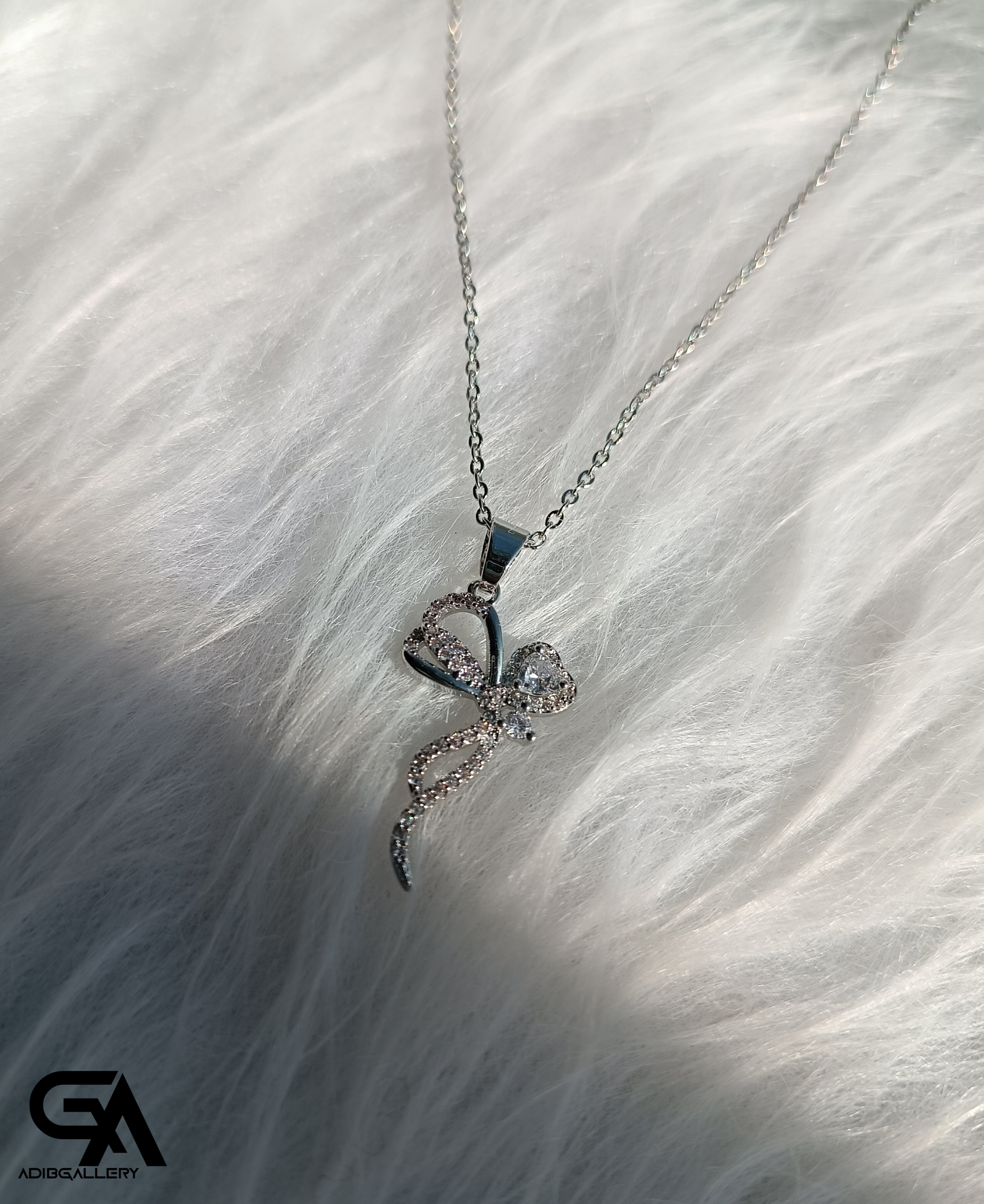 گردنبند دخترانه جواهری طرح پاپیون نقره ای استیل