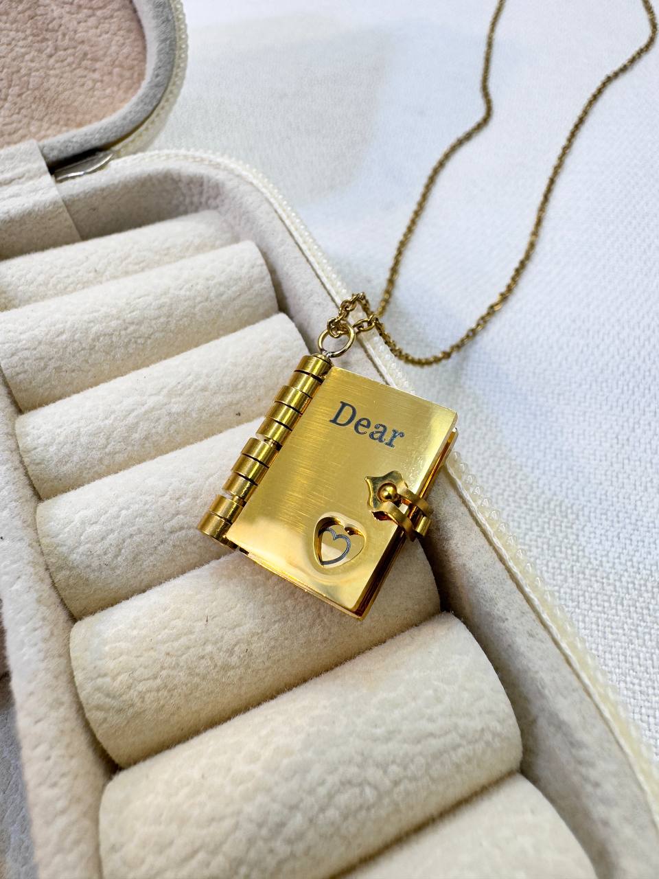 گردنبند استیل دفترچه رنگ طلایی و نقره ای