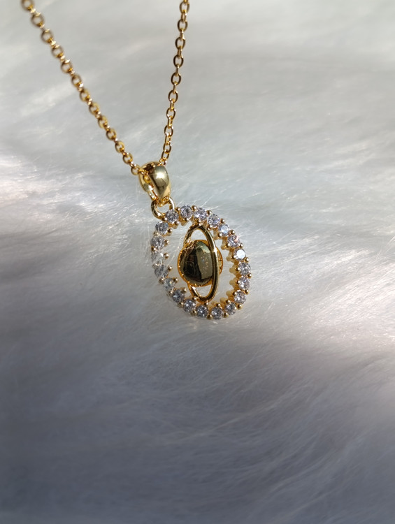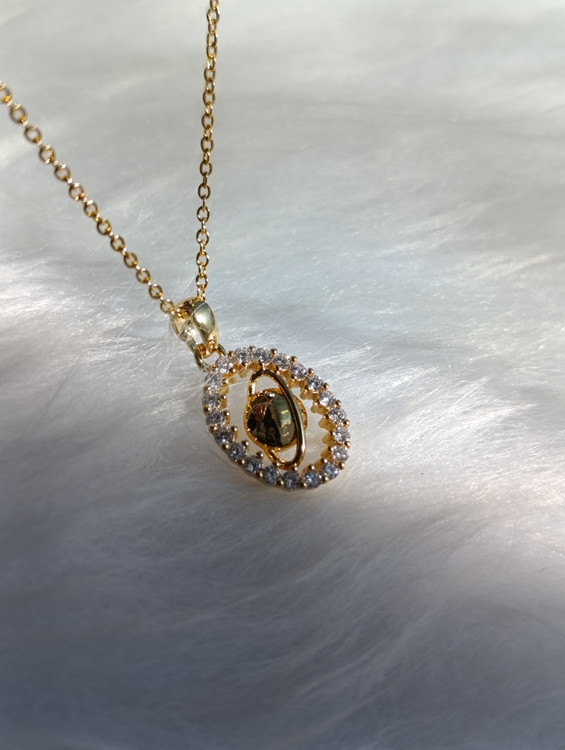 گردنبند زنانه لوکس و مدرن با آویز بیضی نگینکاریشده و کریستال مرکزی متحرک (Dancing Stone). این آویز با هر حرکت بدن میدرخشد و یک انتخاب خیرهکننده برای مجالس و هدیه است.
