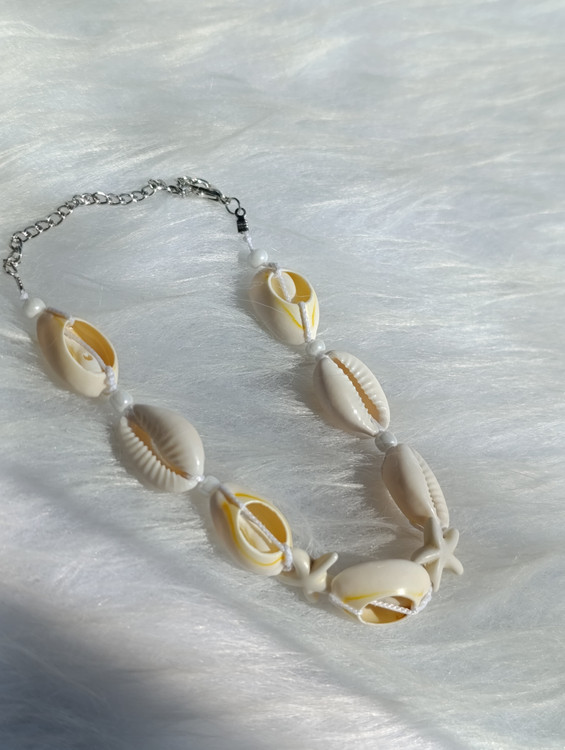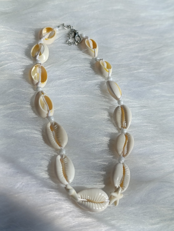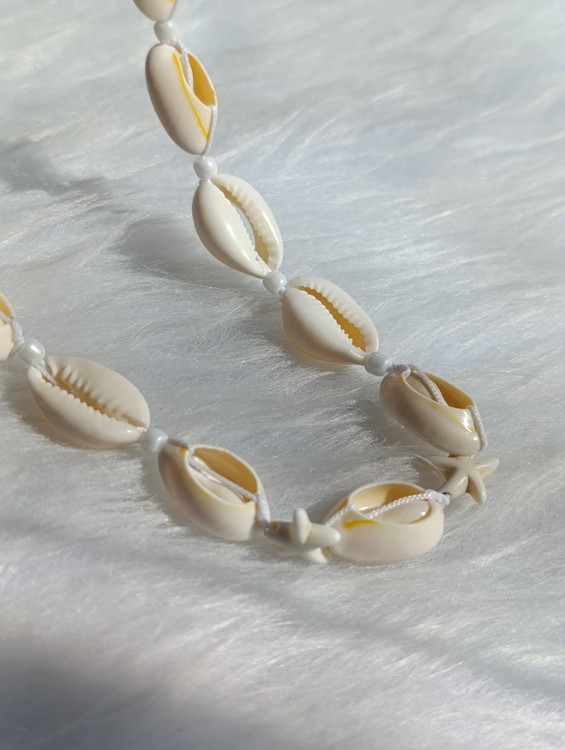 ست کامل گردنبند و دستبند با صدفهای طبیعی، مهرههای ریز و آویز تزئینی ستاره دریایی. این ست دستساز، انتخابی ایدهآل برای استایلهای تابستانی، بوهو و ساحلی است
