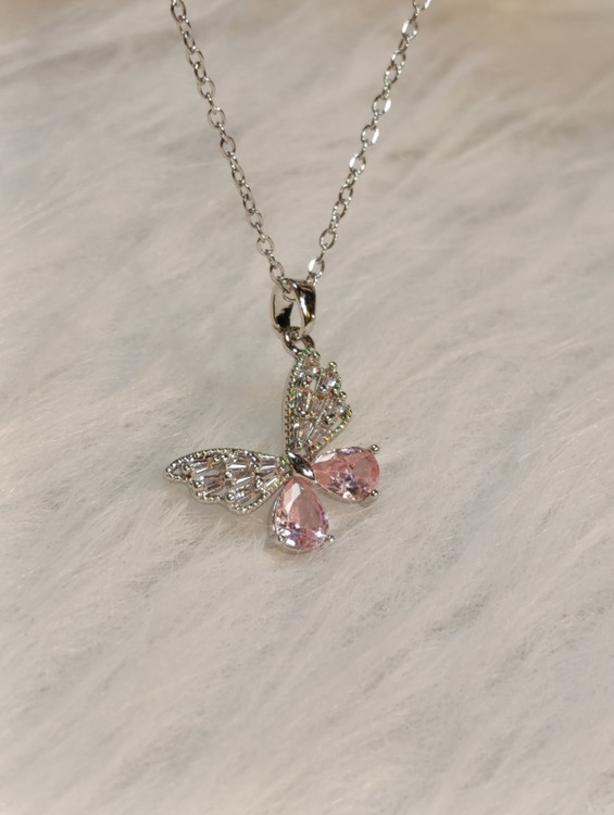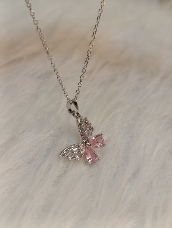 ظرافت و درخشش در یک قاب! گردنبند پروانه نگین صورتی، یه اکسسوری ترند و بسیار شیک برای استایلهای روزمره و مهمانیهای دوستانه. این محصول باکیفیت و رنگ ثابت بوده و هیچگونه حساسیتی ایجاد نمیکند. پروانه نماد زیبایی و آزادی است؛ با این گردنبند، درخشش خود را چند برابر کنید."