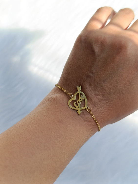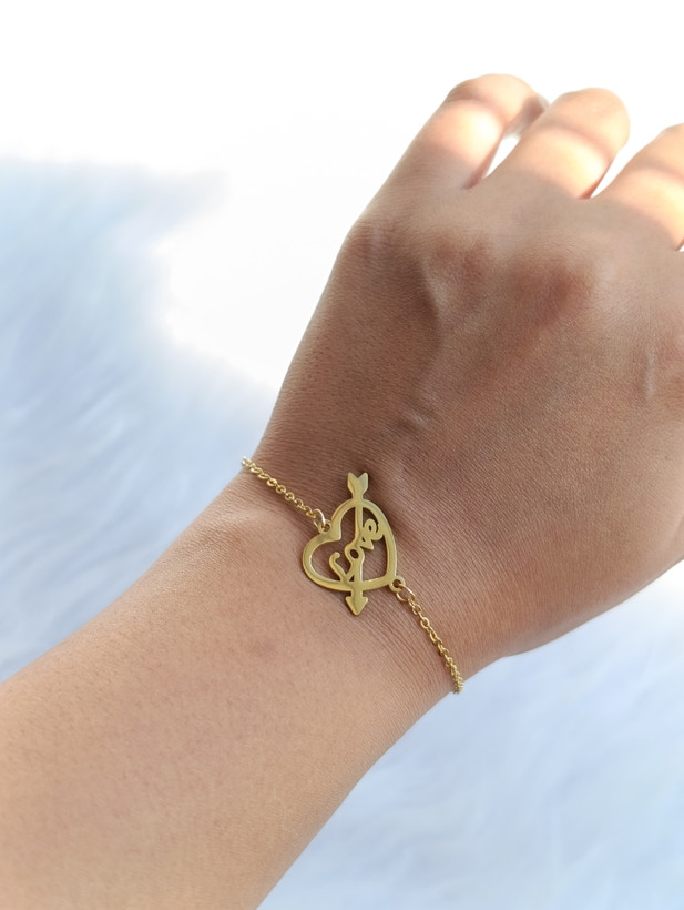 دستبند قلب تیر خورده با حکاکی حروف S و C (یا G)، نماد عشق و پیوند عمیق. این دستبند استیل رنگ ثابت و ضد حساسیت یک انتخاب عالی برای هدیه دادن به کسانی است که دوستشان دارید. طراحی فانتزی و طلایی آن جلوهای خاص به استایلهای اسپرت و روزمره شما میبخشد
