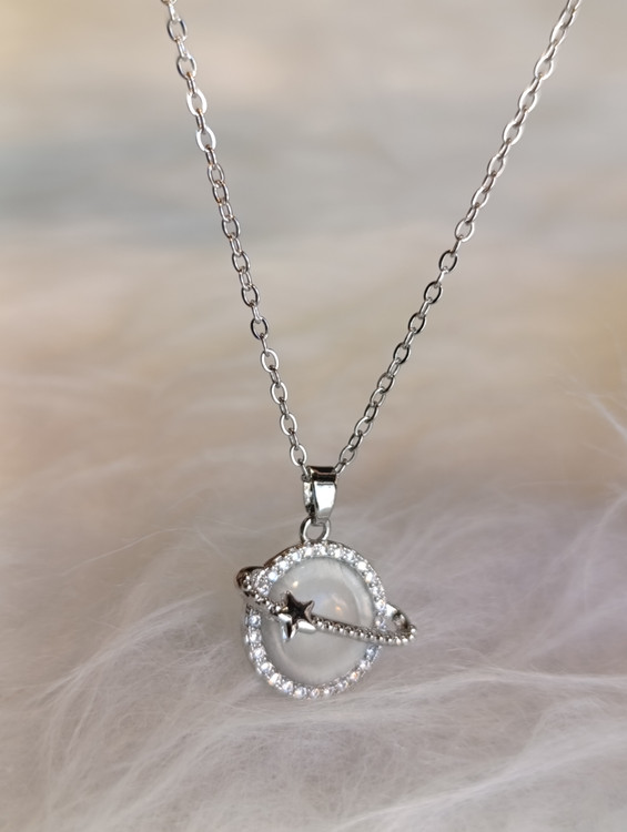 گردنبند کهکشانی ماه و ستاره نقره ای استیل