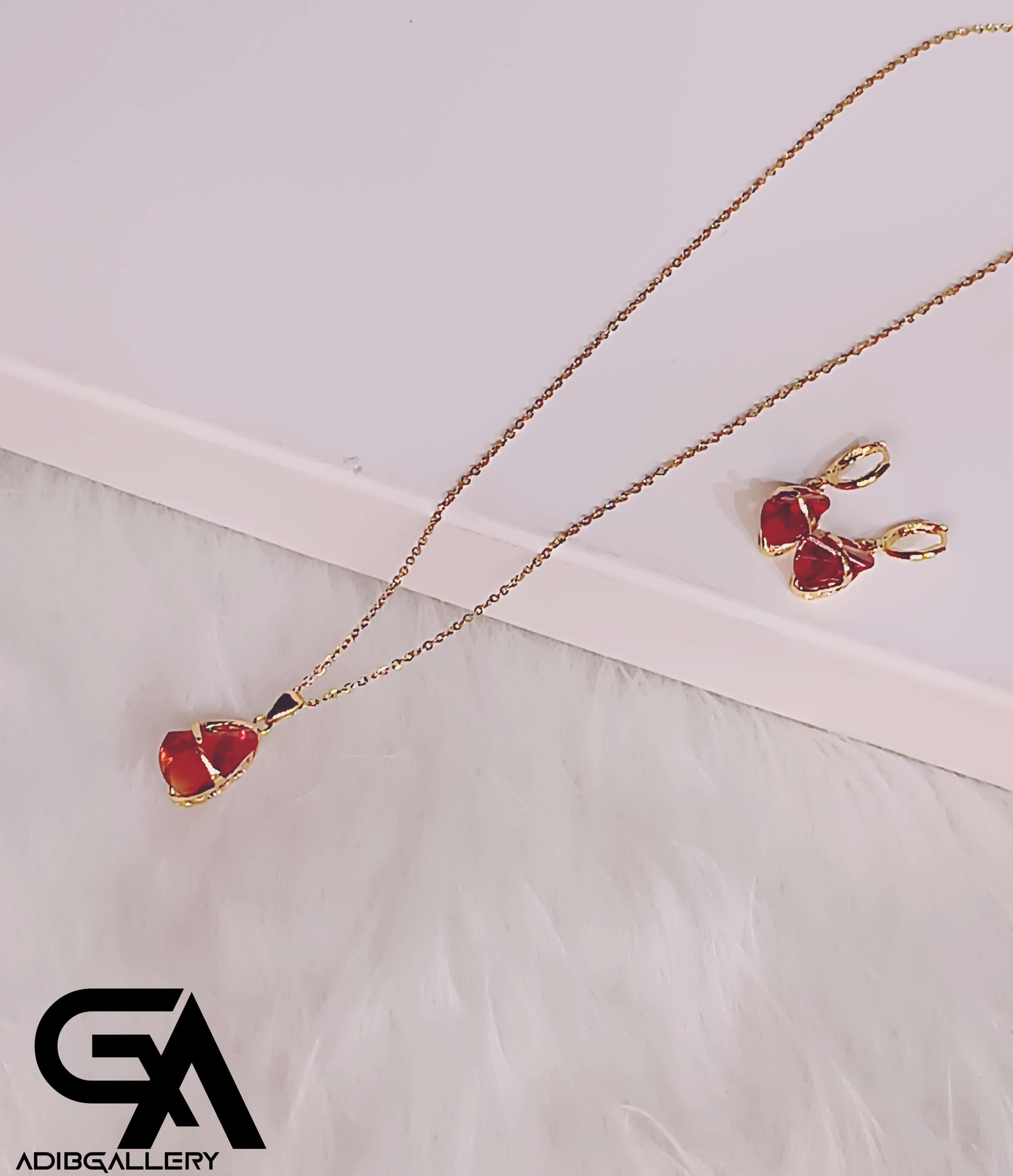 گردنبند ست قلب و شمشیر استیل نقره ای نگین قرمز