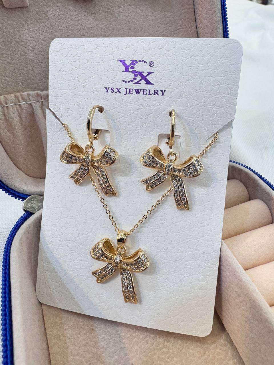 نیم ست استیل با گوشواره های طرح طلا نگین قرمز