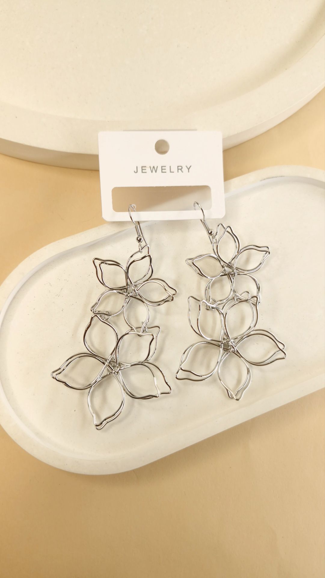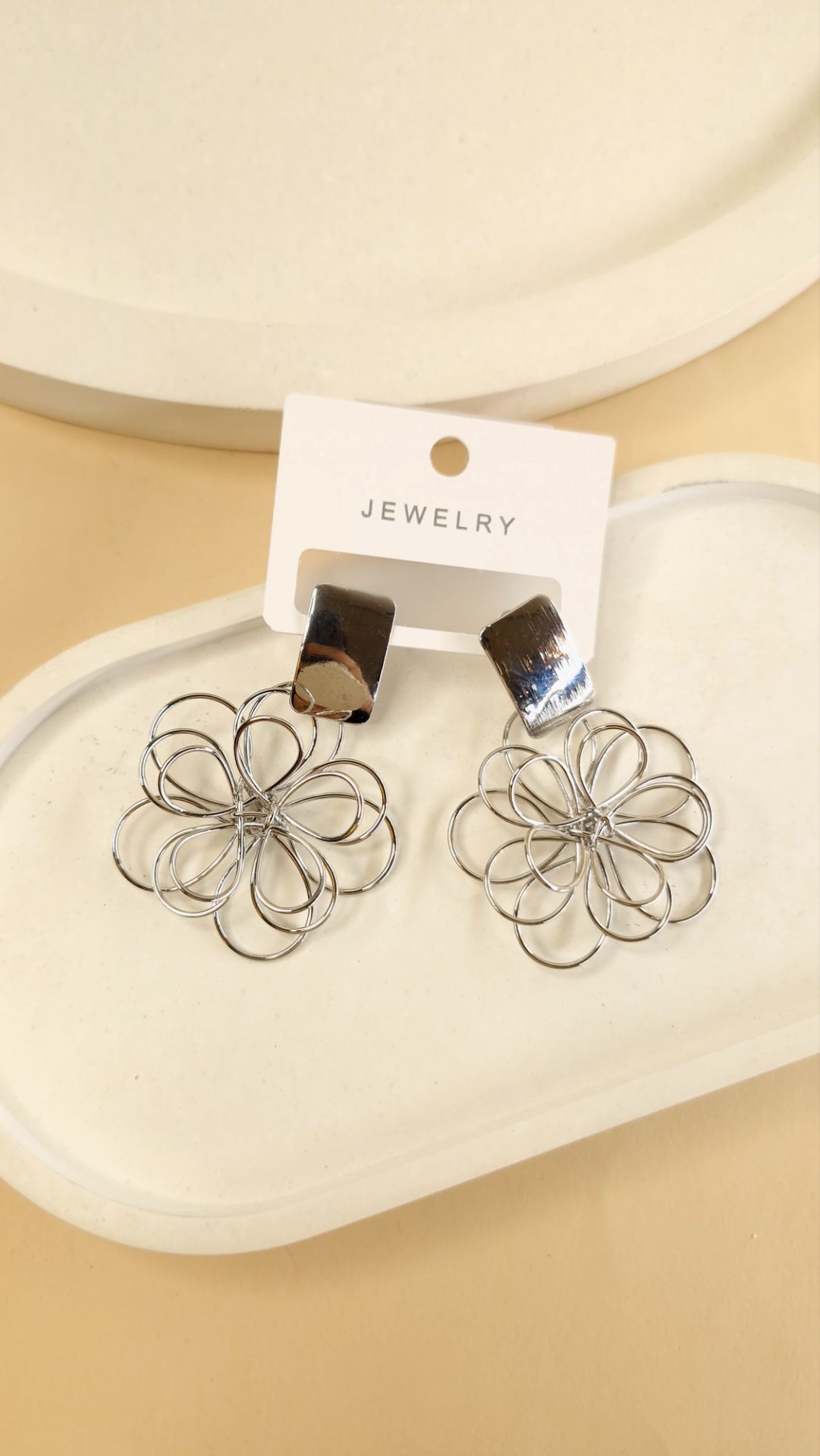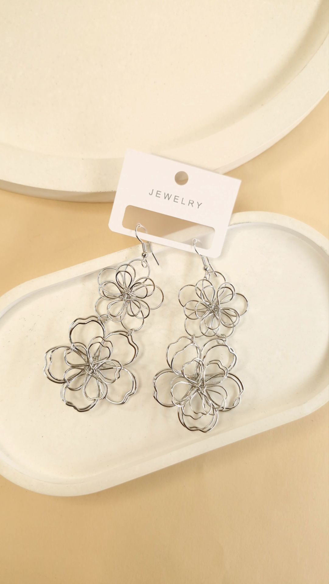 گوشواره پینترسی زارا مدل سه گل نقره ای