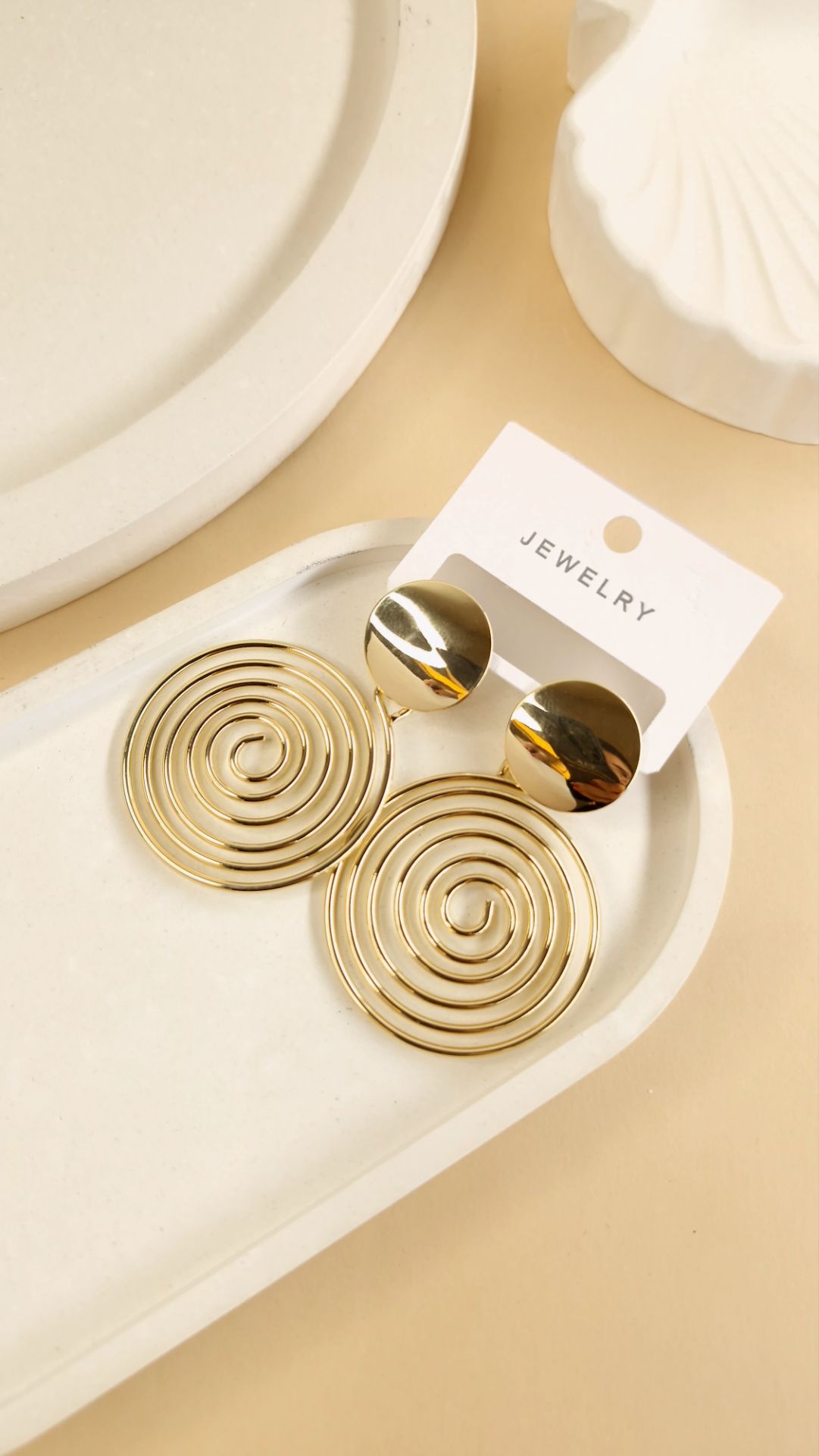 گوشواره حلقه استیل طلایی با طرح بسیار زیبا