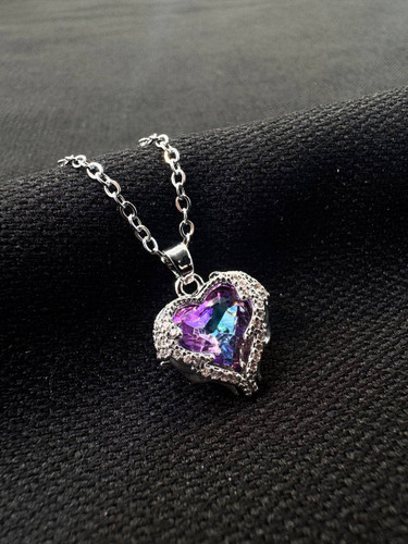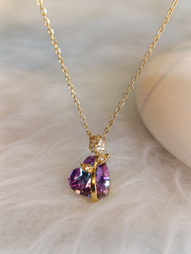 گردنبند طرح قلب بنفش استیل رنگ ثابت
